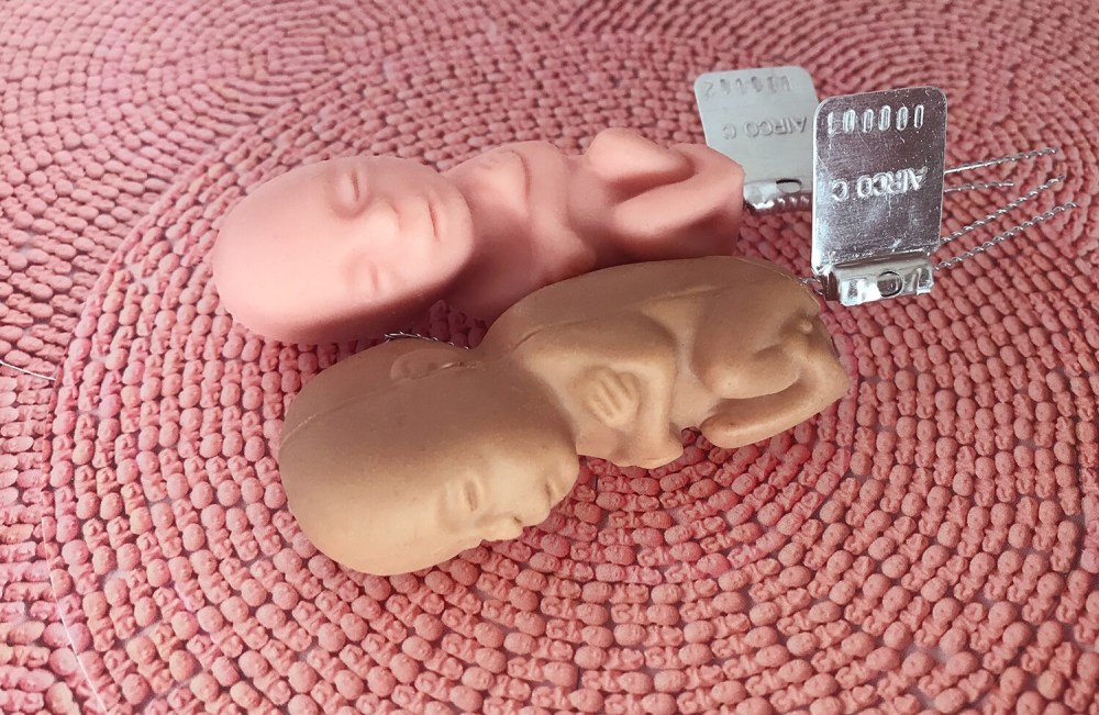 Airco Caravan‘s art (Nasty Women Amsterdam), presented on the picture below, is a response to misogynistic presidents and demonstrations of the Christian pro-life movement, which uses all possible means to demonize abortion. They show gruesome pictures with the slogan The Art of Abortion to frighten people; children are indoctrinated into sampling little 12-week-old silicon fetuses. These fetuses were the core of Airco Caravan’s project. When she ordered 2,000 fetuses, they ran out of stock for many weeks, so the pro-life organisation wasn’t able to use those fetuses for their own purpose. (source: Creative Debuts)