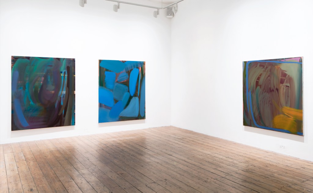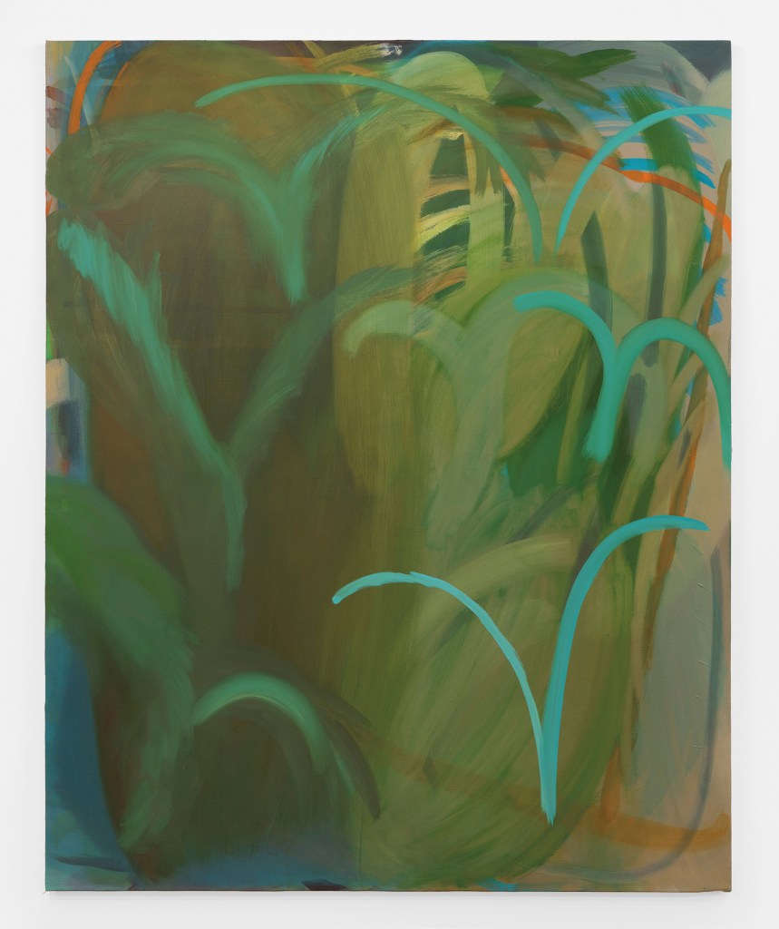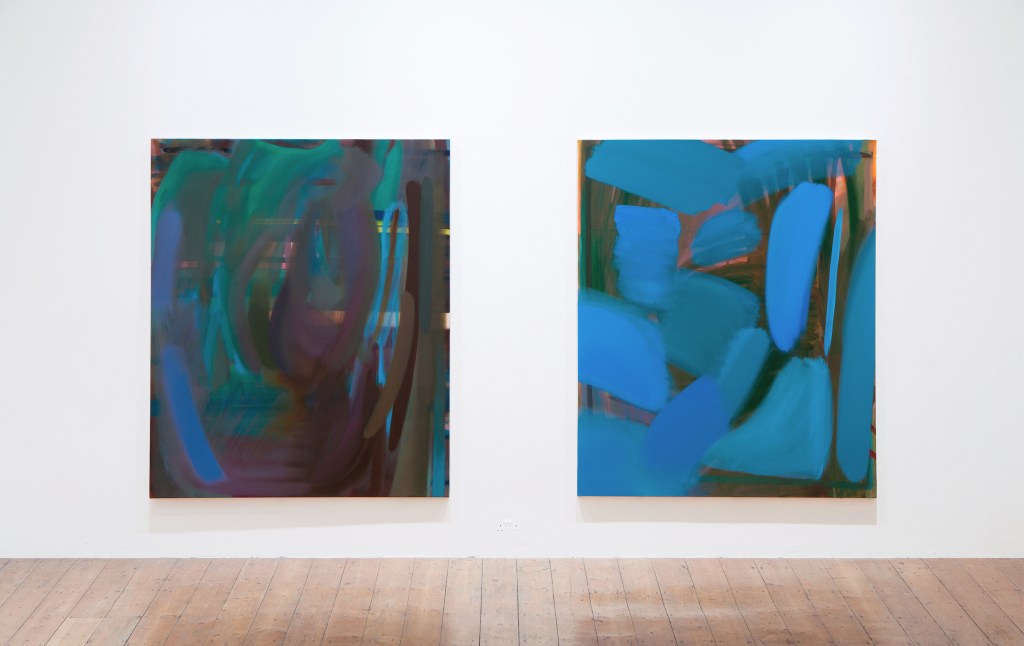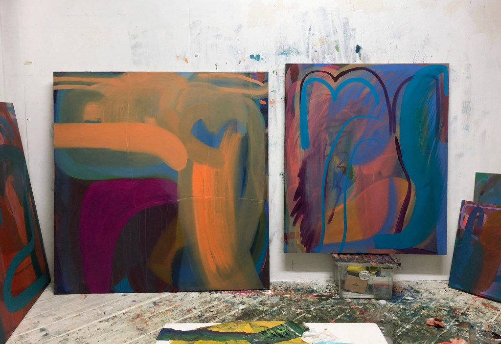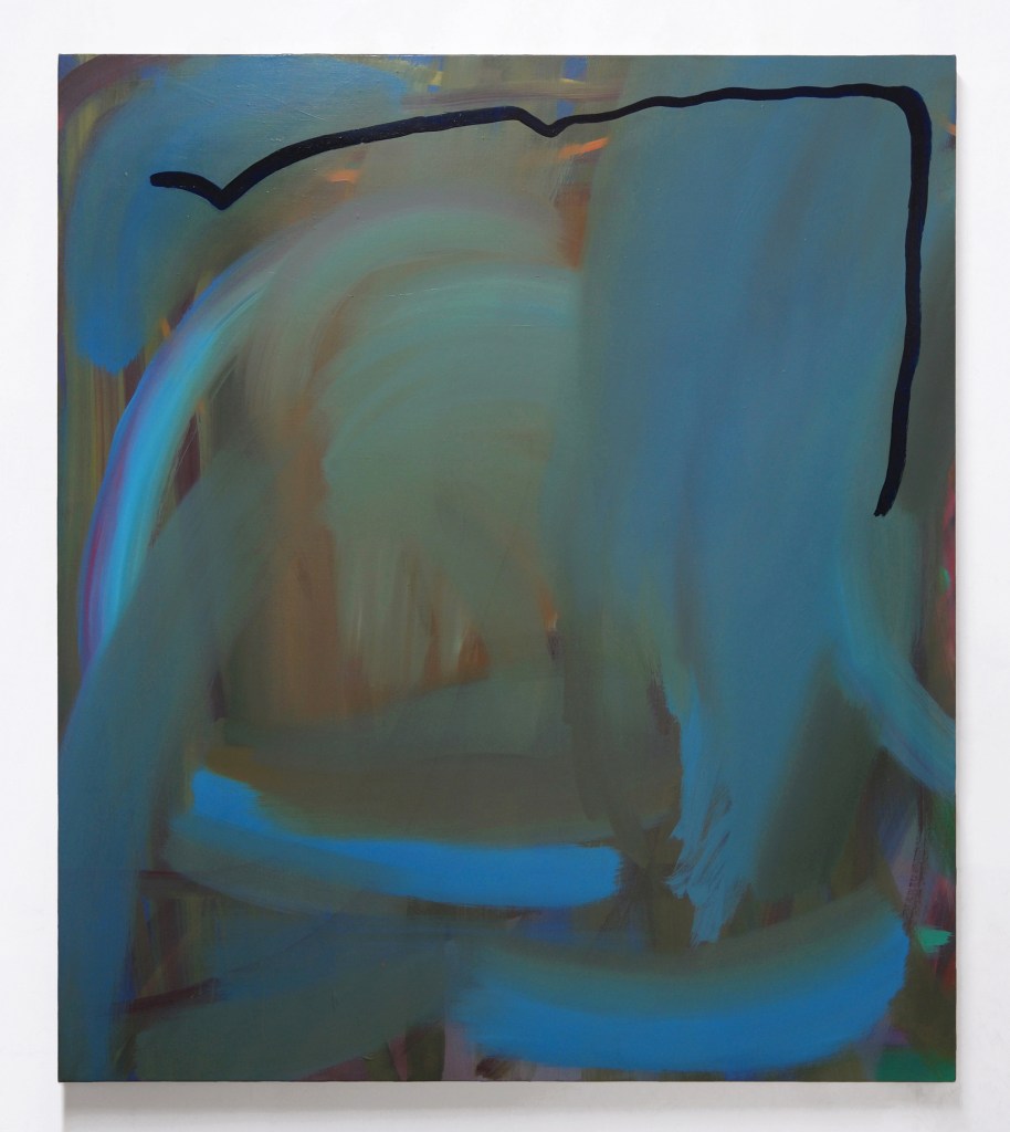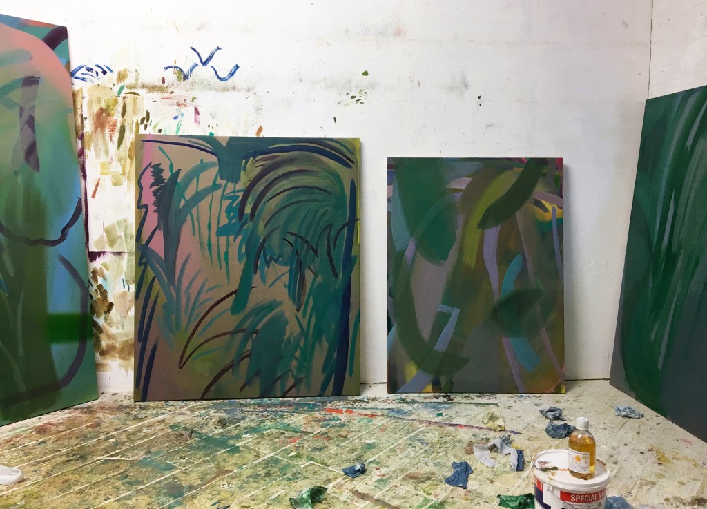 As you’ve already mentioned, your paintings contain multiple layers and gestural marks. This seems to offer a sense of rhythm or movement across the canvas. Do you listen to music when you paint?
