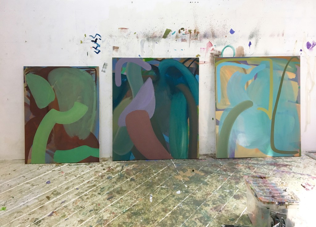 The current global health crisis has affected my day-to-day. During the lockdown I spent more time walking than painting, which made me feel like I was painting outside the studio. I also had to change how I worked and what I’m working on. My studio is an hour’s walk from my home and I would walk to the studio only once a week, working from my lockdown studio at home the rest of the time. Here, I worked on drawings and collages rather than paintings. I was able to spend more time experimenting with collage, cutting out pieces or shapes and sticking them together in different arrangements. I am now slowly getting back to normal studio life, however I am still cutting up old works and making collaged drawings alongside a new body of paintings.