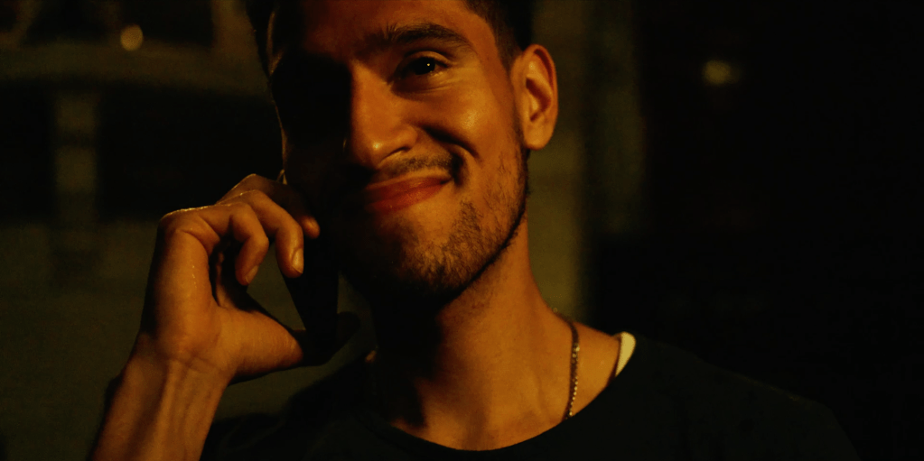 Santi (Jon Gutierrez) sits wedged on a sofa at a dinner party with his girlfriend Violet (Zulekha Chaka). He’s politely listening as two of Violet’s friends bicker about the ongoings of a night out – a night out Santi clearly wasn’t invited to. Squished on-screen between their two out-of-focus side profiles, Santi can’t get a word in edgeways. Using cramped framing and limited negative space, director Harry Richards draws out a sense of claustrophobia and discomfort from his homonymous lead. Based on Richards’ own experiences in Colombia and the experiences of his friend moving to the UK – Santi is a short snippet into the life of a young man trying to settle into new social circles after moving to London from Colombia.
