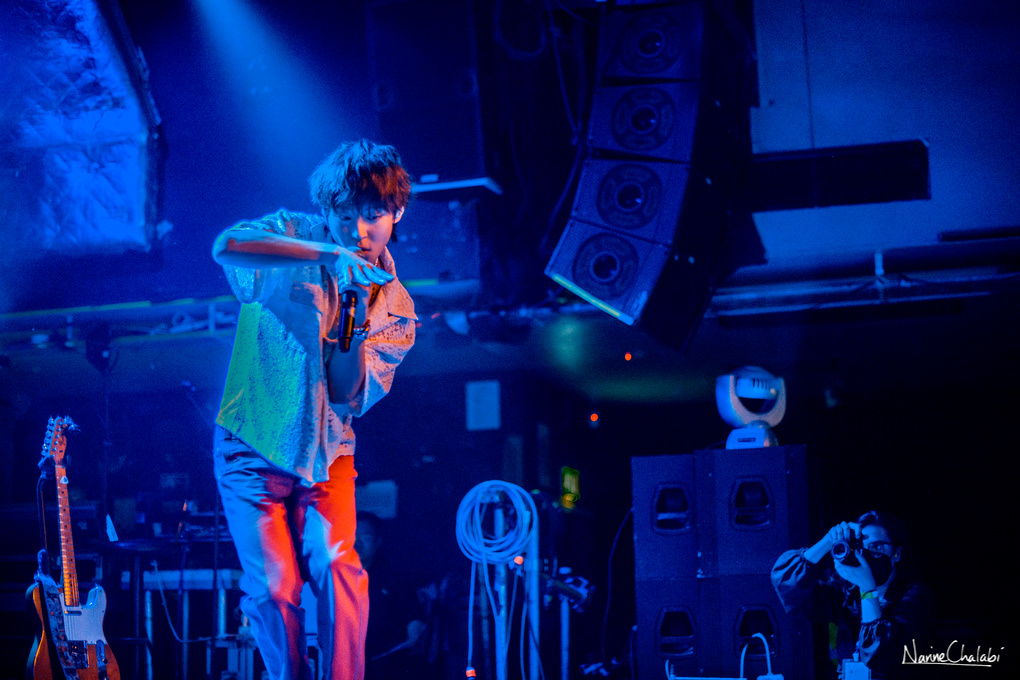 8.30pm hits the clock and a cheerful crowd greets Woosung. Within just a few seconds, the singer starts his performance with Face, a song from Woosung’s 2019 EP Wolf, followed by Lazy and Dimples from the artist’s 2021 studio album, Genre. We are just three songs in and this show is already displaying Woosung’s vocal perfection. Although he might be tired from his relentless travelling and touring [prior to his European shows, Woosung supported Epik High on their US tour], he still gave an absolutely phenomenal opening performance.