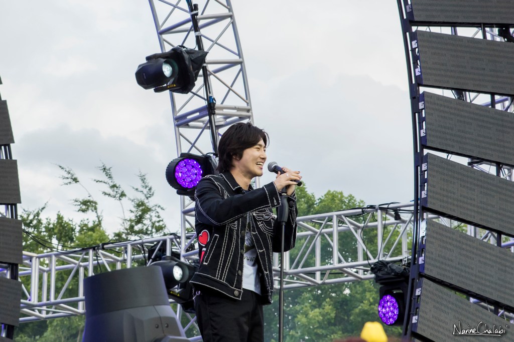 The mood changed when SUHO of EXO and his live band appeared on stage. Dressed in a black denim jacket and jeans, SUHO began his set with Let’s Love, followed by Morning Star. His next track, Grey Suit, really impressed everyone gathered in Southwark Park. It is a superb pop-rock song that allowed the artist to showcase the stability of his voice. He wasn’t off-pitch, neither did he sound shaky or wobbly – he had perfect control over his voice, and every single note was beautifully executed. After that, the singer moved to Hurdle and then performed a cover of Meet You by Chance, which was originally written and composed by Songgolmae, one of the most popular Korean hard rock bands in the 1980s. The Beatles’ Let It Be was another melody that SUHO presented to the crowd, and while performing his next track, O2, the artist showed that his registers are something to be highly praised. He projected and held his voice together very well, whether it was a chest voice or head voice, he did a great job. SUHO concluded his concert with Made In You, which showed the singer’s sublime vocal agility once again. I wished that he would have performed a hundred more songs that day.
