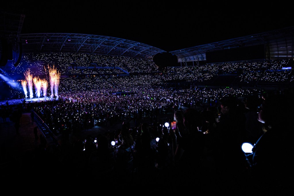 As the lights dropped and the beats of Pandora’s Box swam through the stadium, j-hope showed what he is made of. Surrounded by a sea of ARMY BOMBs lighting up the night, the artist set fire to the stage with tracks from Jack In The Box (2022), kicking off the performance with an intense mix of perfect precision and untamed energy. The energy reached another level when Grammy-winning R&B icon Miguel stunned the crowd with a surprise appearance, joining j-hope for a performance of their March 2025 hit Sweet Dreams.