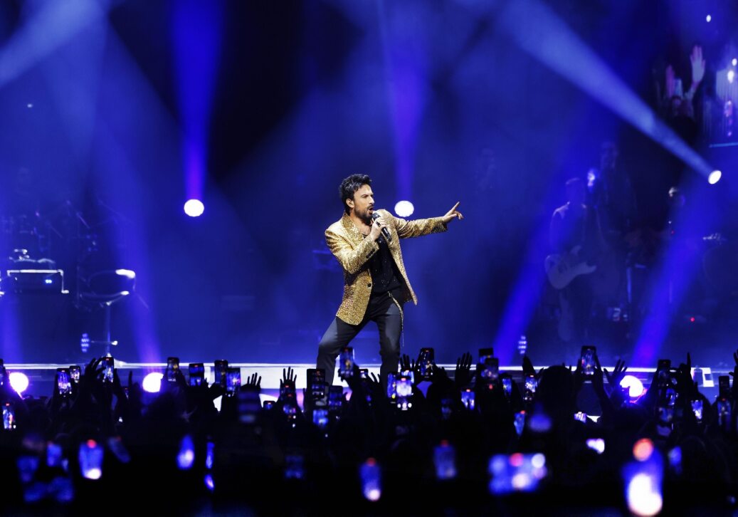 A hush fell over the crowd before the stage exploded into a swirl of digital imagery, with an AI-generated intro by Ahmet Rüstem Ekici and Hakan Sorar filling the arena. Backed by a superb LED setup designed by Salih Aksu and directed by veteran stage designer Can Besbelli, the production delivered a cinematic experience worthy of the venue. The visuals hit you with colours with each frame syncing perfectly with Tarkan’s music, sometimes subtle and soft, other times very explosive.