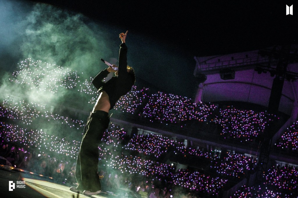 During the tour, J-Hope didn’t just interact with the crowds; he celebrated them, sharing moments on Instagram with pride and infectious positivity. He not only performs for ARMY, but he performs with them. And j-hope is just as much a fan of ARMY as they are of him, especially proud to uplift and celebrate such a powerful community of women.
