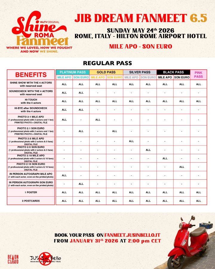 Rome is about to shine a little brighter this spring. On May 24, fans will have the chance to meet the stars of the beloved Thai BL series Shine at a special SHINE Fanmeet in Rome, part of the very unexpected JIB DREAM FANMEET 6.5 event series organised by JUS IN BELLO.