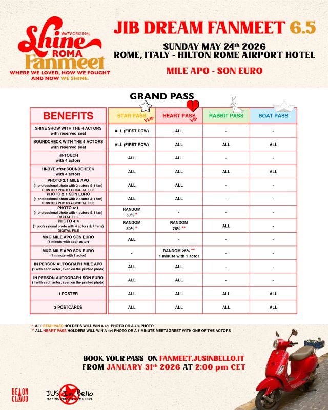 Rome is about to shine a little brighter this spring. On May 24, fans will have the chance to meet the stars of the beloved Thai BL series Shine at a special SHINE Fanmeet in Rome, part of the very unexpected JIB DREAM FANMEET 6.5 event series organised by JUS IN BELLO.